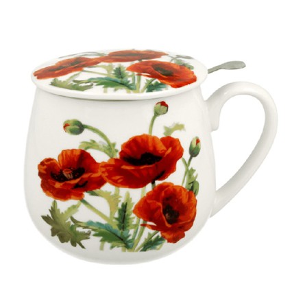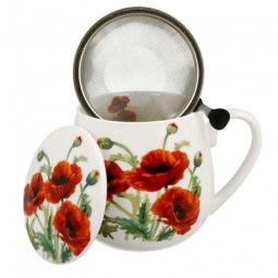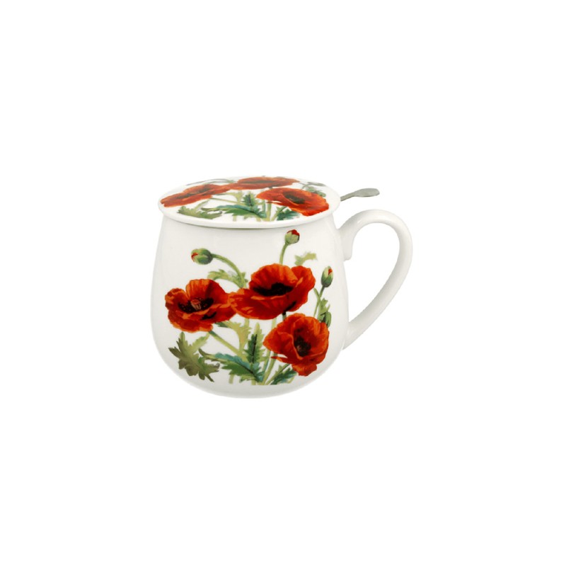 Una tassa de 400 ml, il·lustrada amb roselles.