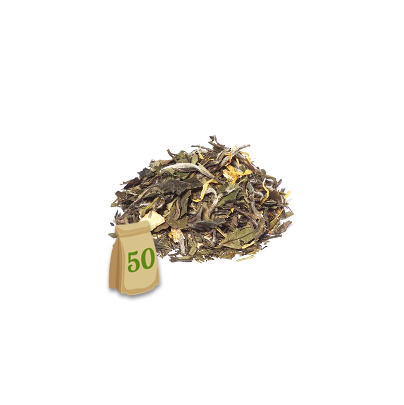 Te blanc amb taronja, coco i espècies. El te blanc té més...