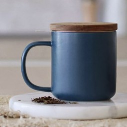 Taza de porcelana de 380 ml. Con tapa y filtro de acero...