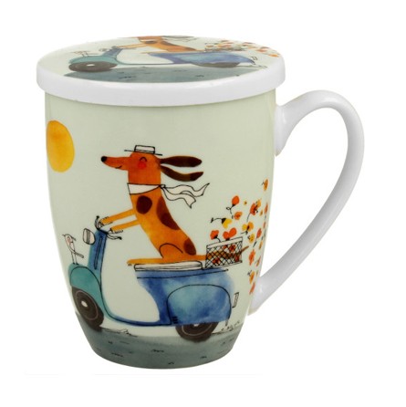 Taza de porcelana de 350 ml, con filtro de acero inoxidable y tapa. Para homenajear a nuestros queridísimos perretes, que en Siente adoramos.