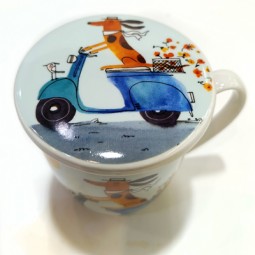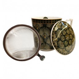 Taza de porcelana de 380 ml. Con tapa y filtro de acero...