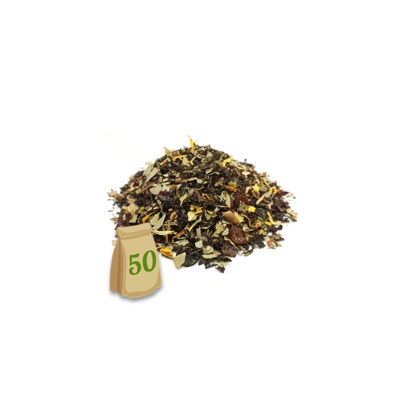 Ingredientes: Té Assam y southindia, menta, eucaliptus, regaliz, escaramujos y caléndula. Todos los ingredientes son de cultivo ecológico certificado (BIO).