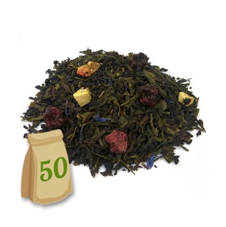 Ingredientes: Té Pu Erh, té verde Sencha, bayas de saúco, fresa, kiwi, frambuesas, moras y pétalos de aciano.