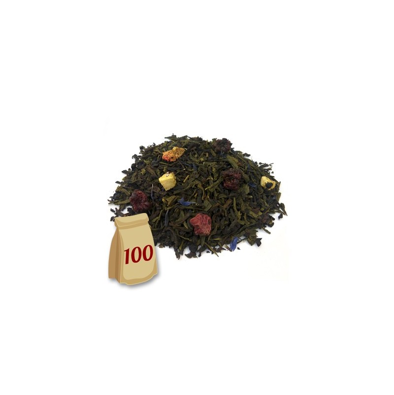 Ingredientes: Té Pu Erh, té verde Sencha, bayas de saúco, fresa, kiwi, frambuesas, moras y pétalos de aciano.