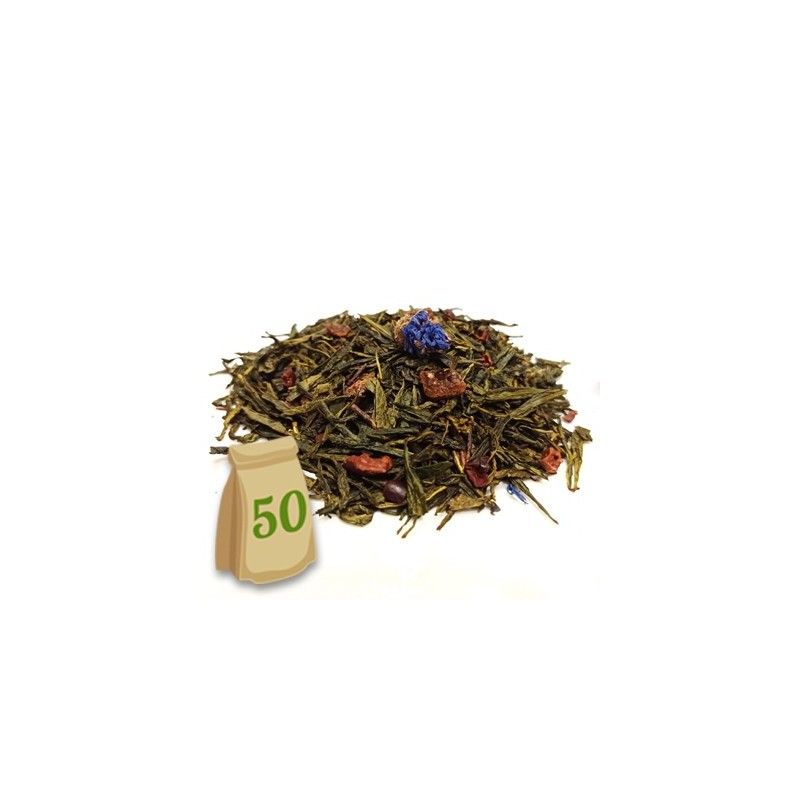 Ingredientes: Té verde Sencha, dátil (dátil, harina de arroz), piel y trozos de cacao, pétalos de aciano y aroma a café. Todos los ingredientes son de cultivo ecológico certificado y el aroma es natural (no BIO).